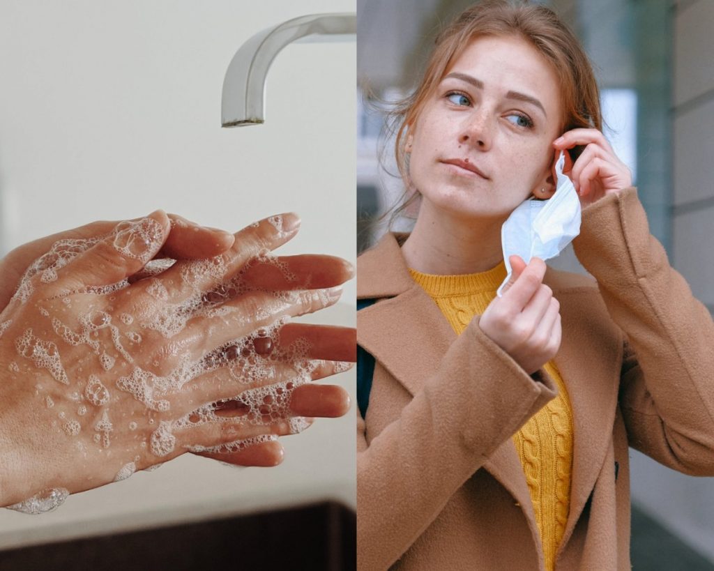 - Lave sus manos muy bien con agua y jabón o ya sea con una solución hidroalcohólica. (El mismo paso para ponerse la mascarilla respiratoria)