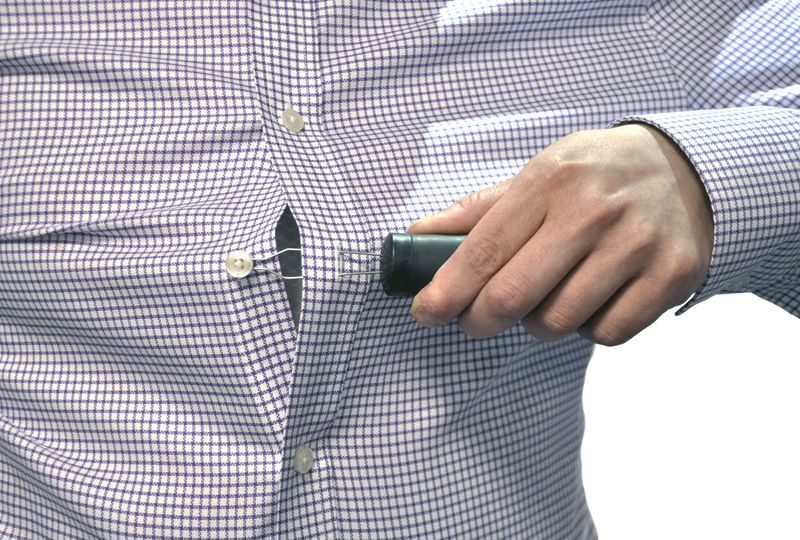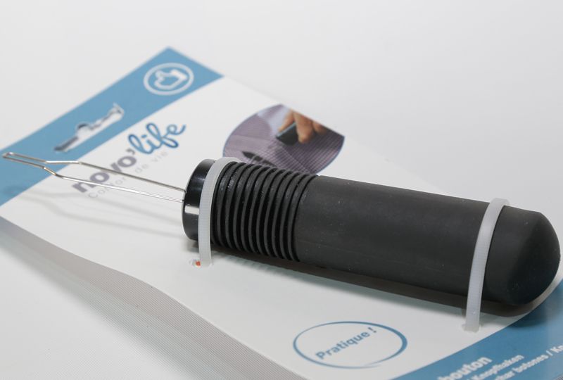 Para usarlo, basta con insertar el botón en el ojal, y tirar de él con un movimiento circular. El instrumento cuenta con un mango en goma antideslizante.