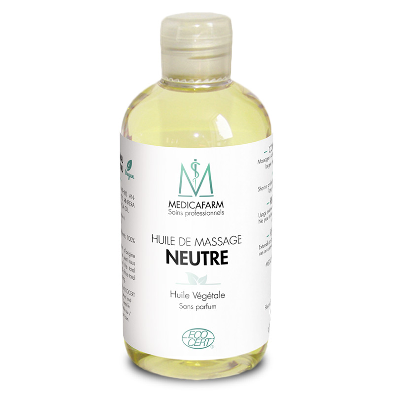 El aceite para masaje Medicafarm, es un masaje neutro ideal para los masajes de larga duración. Puede ser utilizada para masajes de rehabilitacion y manipulación. El aceite de masaje BIO puede ser miscible con los aceites esenciales. Este aceite permite y facilita su uso gracias al tapón que limita el goteado. Basta con aplicar algunas gotas del aceite en sus manos, frotarlas y comenzar el masaje. Este aceite de masaje aporta al cuerpo energía, nutrientes esenciales y vitaminas. Ayuda a combatir el estres, la tension del cuerpo y a la recuperación deportiva.