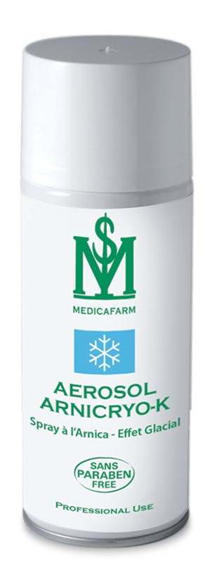 El aerosol Arnicryo-k de Medicafarm ha sido fabricado para calmar los dolores y los traumatismos. Asimismo, este spray favorece la reducción de las hinchazones, las inflamaciones y los hematomas. Gracias a su vaporizador, el producto es fácil de utilizar. Con el fin de que usted lo utilice de manera eficaz, basta con que rocíe el spray de manera circular a una distancia de 15 cm. Sin embargo, debe tener en cuenta que no se recomienda utilizar el producto sobre una herida abierta. El efecto refrescante del aerosol calmará los dolores de manera rápida y efectiva. Además, su nueva fórmula reforzada con árnica, ayudará a disminuir los dolores musculares y los dolores post operatorios. El uso de este spray puede ser ambulatorio (cuando usted presente algún traumatismo que deba tratar) o puede ser regular (en el caso de las personas que practicas deporte de manera cotidiana).