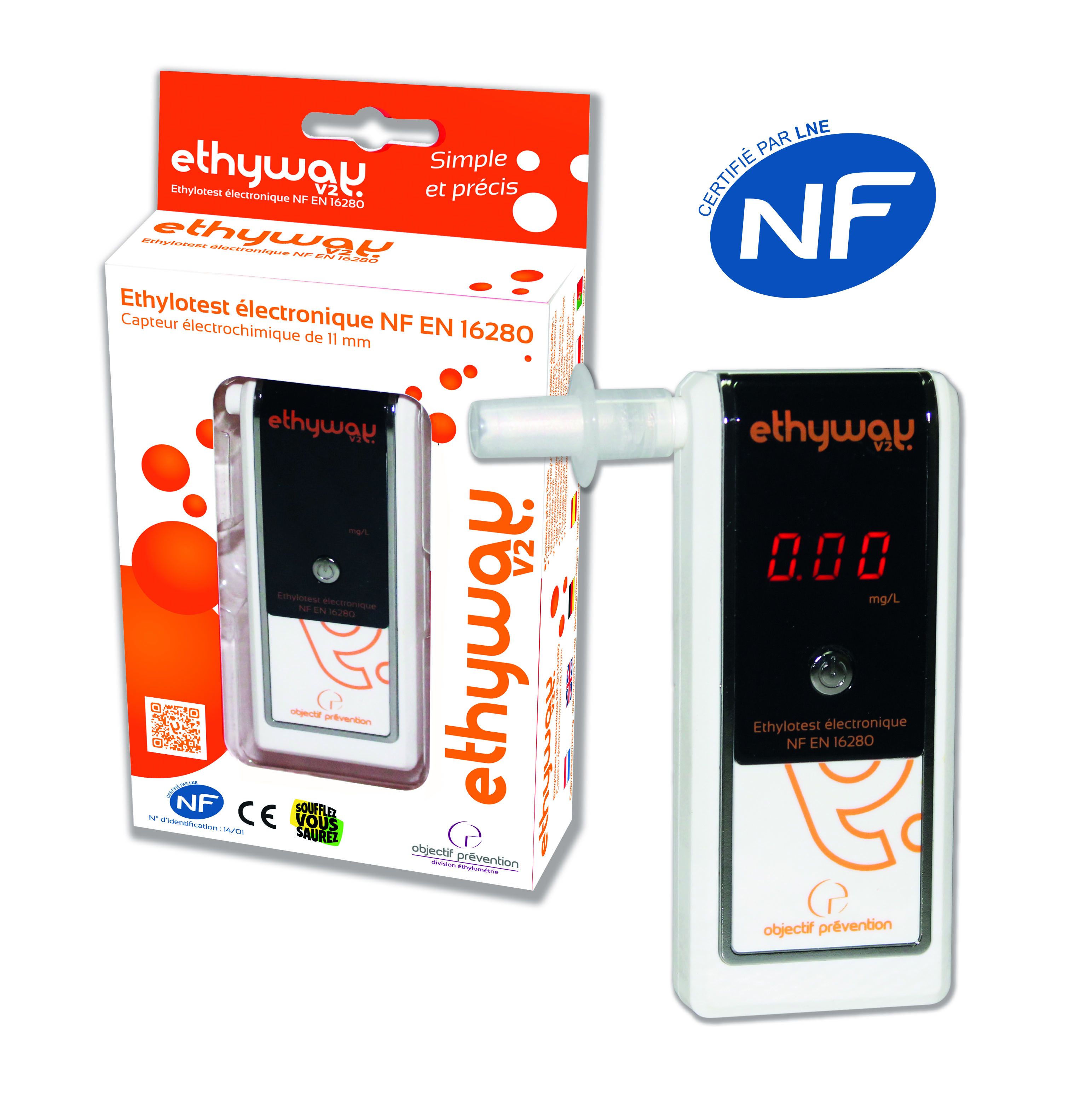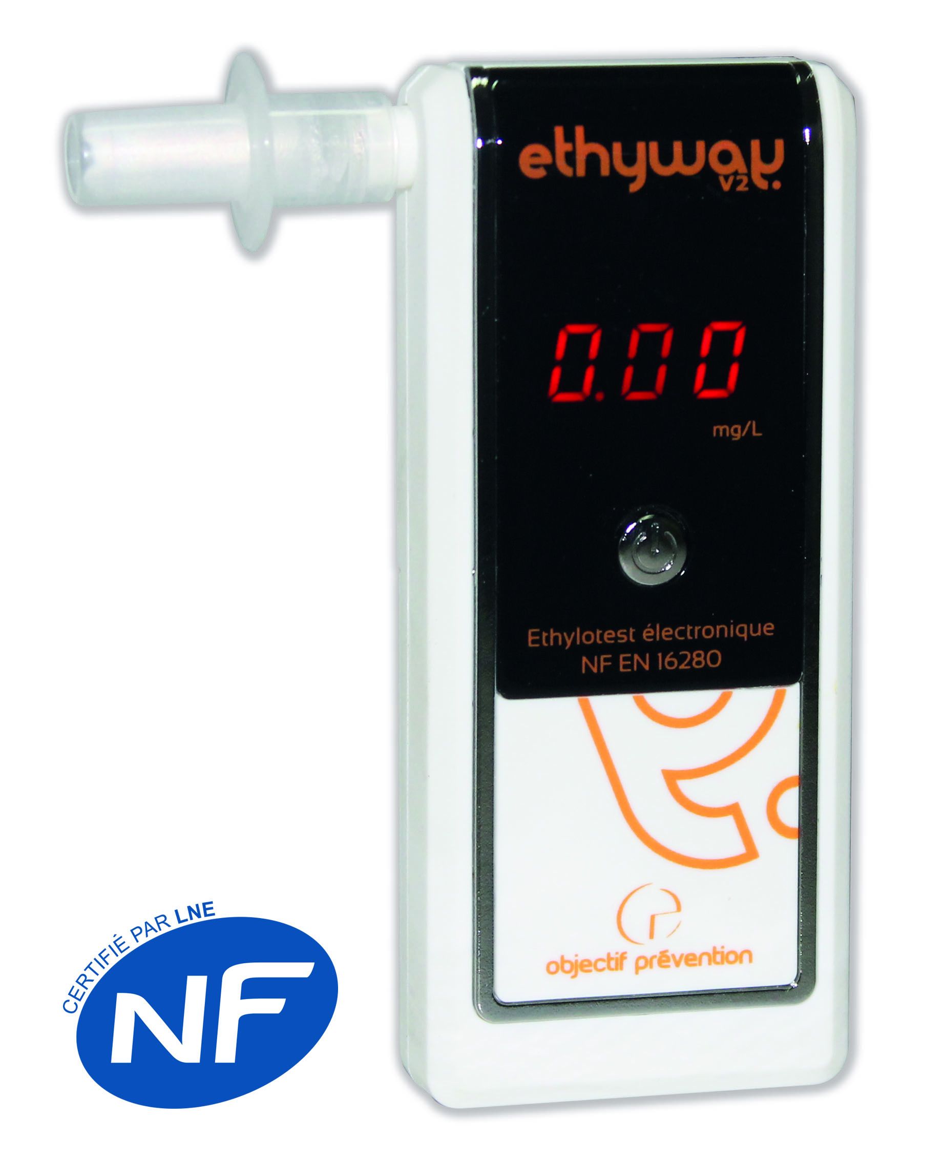 El ETHYWAY V2 es el único alcoholimetro electrónico que sigue la NFEN 16280 (normativa francesa que se aplica a los alcoholímetros que miden el nivel de alcohol en aire espirado) la cual a su vez está regida por la AFNOR (Asociación Francesa para la Estandarización).