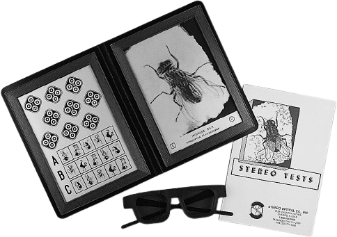 - Una serie de figuras y círculos para medir la agudeza estereoscópica en arcosegundos.