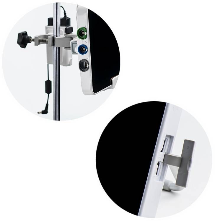 - Portabilidad: Puede montarse en un poste de infusión o transportarse fácilmente de una sala a otra.
