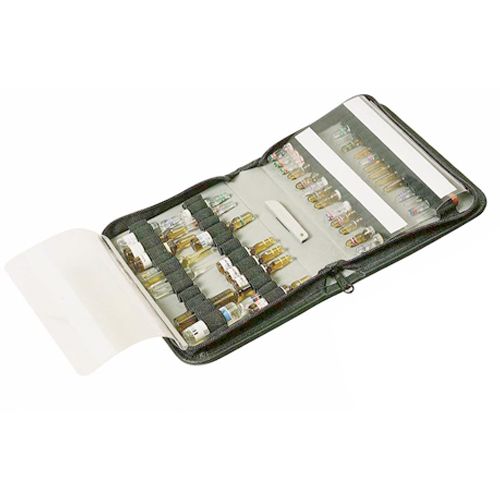 El ampulario en cuero Bollmann esta diseñado para poder guardar con toda seguridad 60 ampolla.