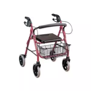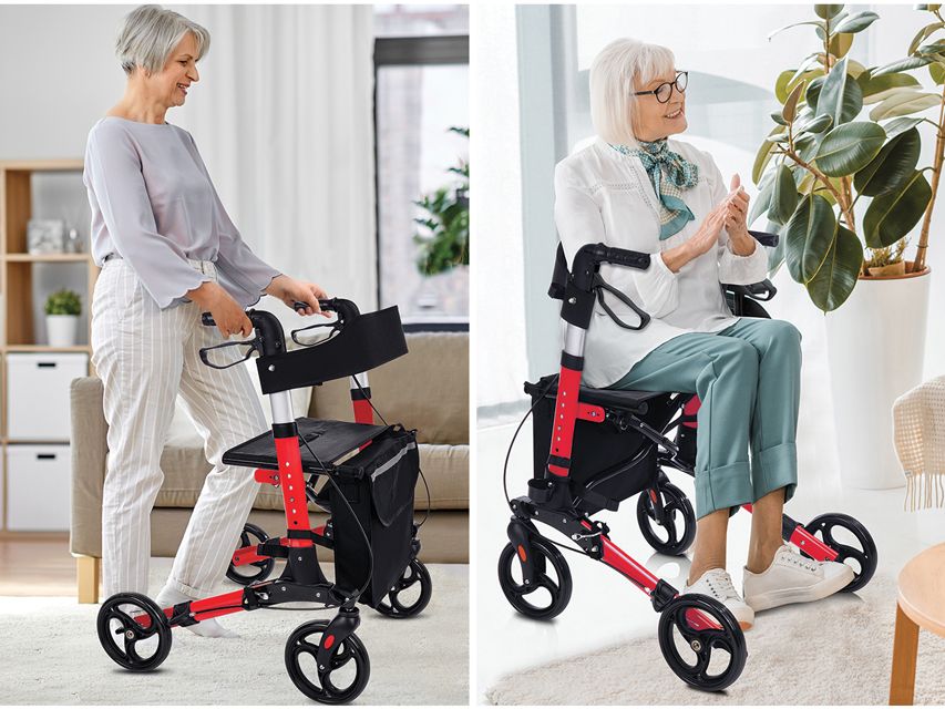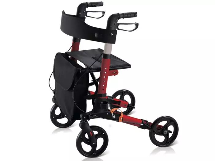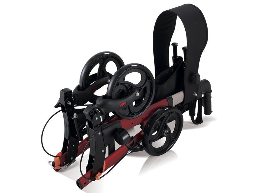 La andador Compact es una ayuda para caminar muy práctica para personas que necesitan apoyo adicional. Este andador está diseñado con una estructura ligera de aluminio rojo para una gran maniobrabilidad. También cuenta con un asiento de tela de malla para mayor comodidad y una correa de tracción hacia arriba para un transporte fácil.