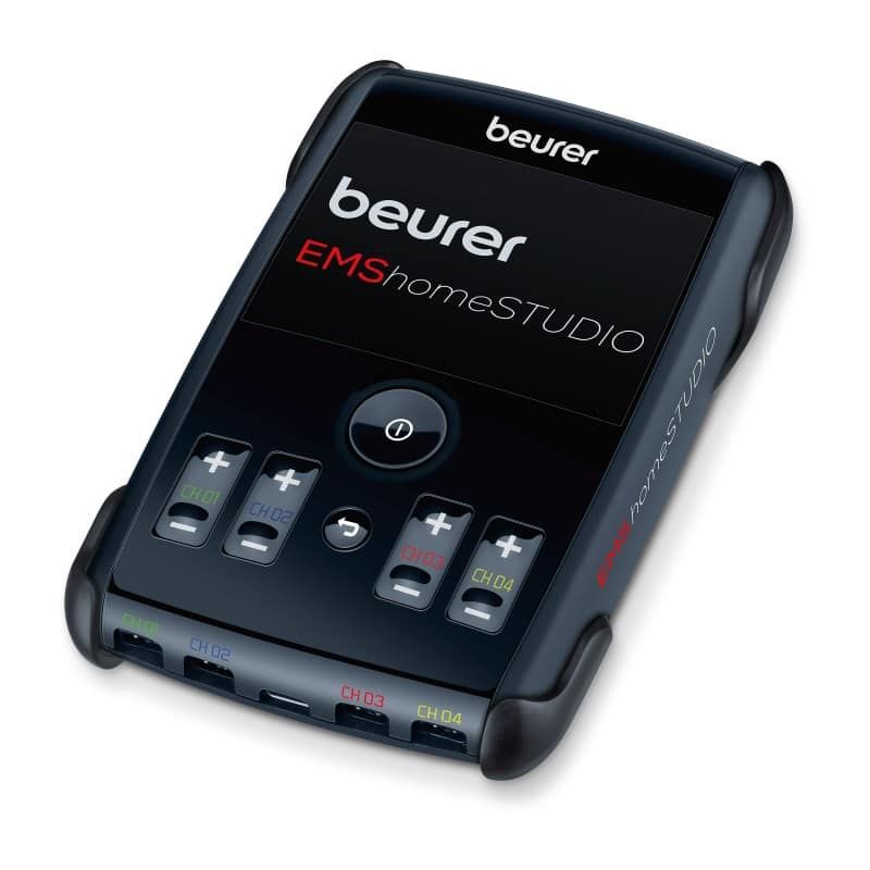 El estimulador eléctrico EMS EM 95 Beurer emplea la tecnología EMS para llevar a cabo la regeneración y la estimulación muscular eléctrica. Con 3 niveles de intensidad, usted podrá seleccionar el que más le convenga (principiante, intermedio, experto). El producto cuenta con 8 electrodos de gel autoadhesivos (45x45mm), así como 4 brazaletes (2 para brazos y 2 para piernas). Si además desea seguir de cerca su esfuerzo y progreso, le será posible conectarse a la aplicación “EMS HomeStudio” desde su Smartphone. Por medio de esta aplicación, usted tendrá acceso a un entrenador personalizado virtual y videos de ejercicios. De esta manera, tendrá la posibilidad de crear sus propias sesiones de deporte con una lista de 50 ejercicios a su disposición. Por su parte, la opción Bluetooth integada transferirá sus datos de una forma bastante práctica. La pantalla TFT a color del estimulador muscular eléctrico EM 95 le brindará instrucciones sobre la posición de los brazaletes y electrodos. Por último, el aparato de estimulación eléctrica EM95 Beurer dispone de la función de desconexión de seguridad.