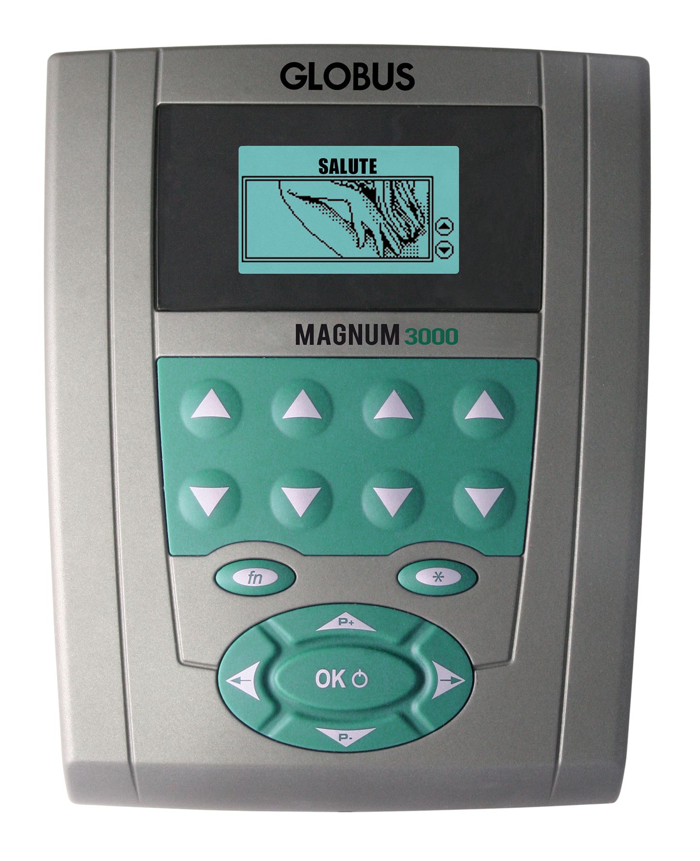 Aparato de magnetoterapia Globus Magnum 3000 - 2 canales - 500 Gauss - 63 Programas - Tratamiento profundo y superficial de patologías y lesiones por campos magnéticos pulsátiles de baja frecuencia - Gran Pantalla Luminosa - Entregado con su pack completo de uso - Garantía : 2 años