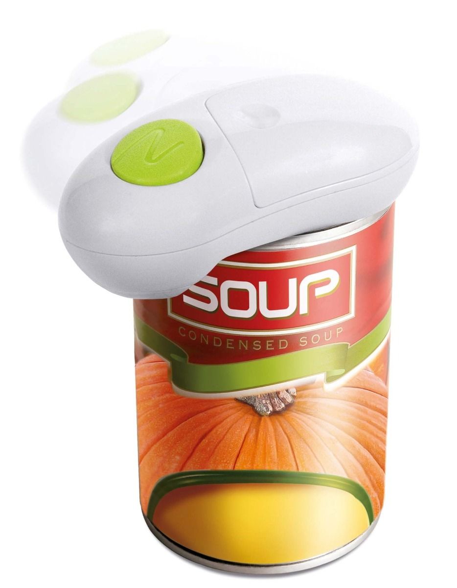 Con el abrelatas automático One-Touch, abrir latas es rápido y sencillo. Basta con pulsar un botón para cortar limpiamente alrededor del borde de la lata, y se detiene automáticamente al finalizar la operación. Su innovadora tecnología, compatible con todas las latas redondas de 65 a 105 mm, ofrece un funcionamiento seguro y sin cortes gracias a los bordes redondeados.