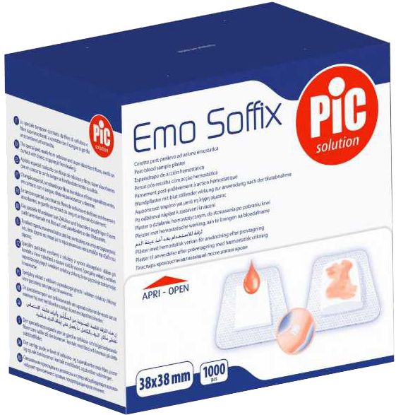 Cada caja contiene 1000 apósitos Emo Soffix. Esta cantidad generosa garantiza disponibilidad suficiente para las necesidades médicas profesionales o personales, ofreciendo una solución práctica y económica para el tratamiento de heridas.