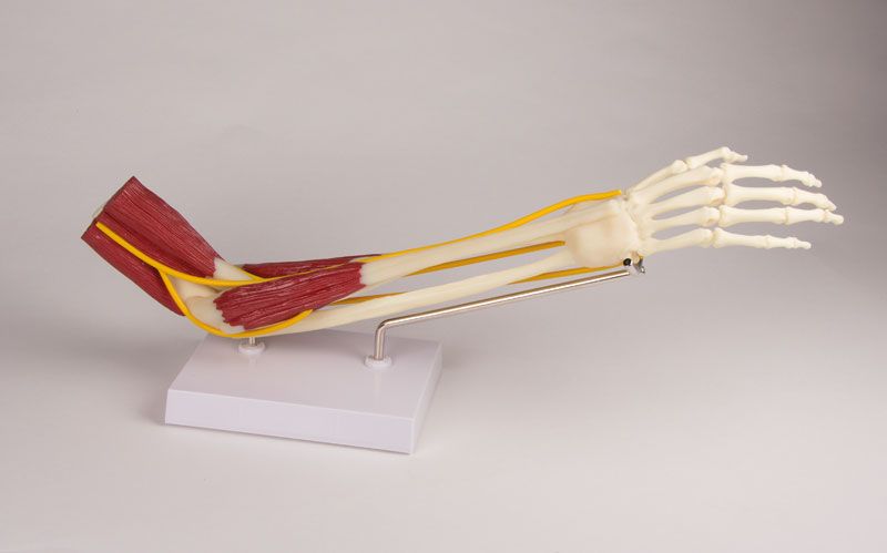 La Articulación del codo con músculos 4566 Erler Zimmer es un modelo a tamaño natural de la articulación del codo con el antebrazo y la mano.