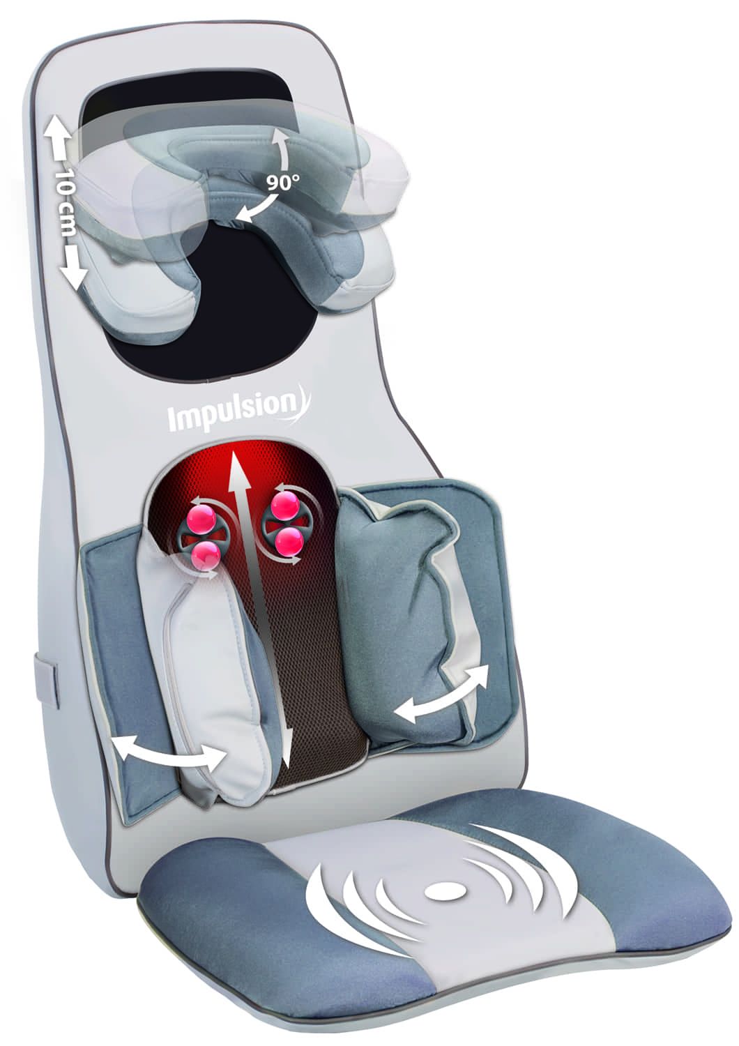 El asiento de masaje Excellence Lanaform agrupa dos tecnologías de masaje ampliamente conocidas en el mundo: