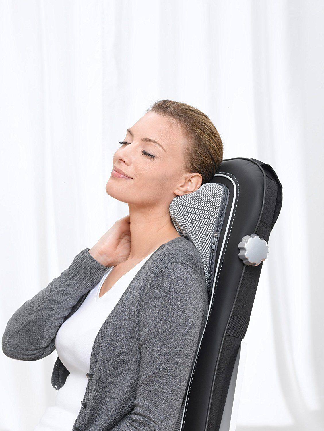 Asiento de masaje Shiatsu Beurer MG 260 - Masaje Shiatsu para el cuello con altura ajustable - 2 colores disponibles: Negro o Crema- Funda lavable a 40°C - 2 velocidades de masaje - Potencia: 60 Vatios - Con colgador para guardarlo en el armario
