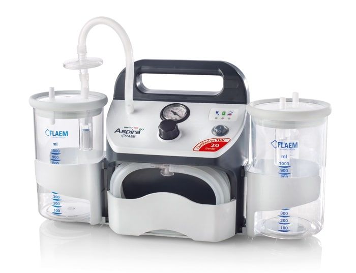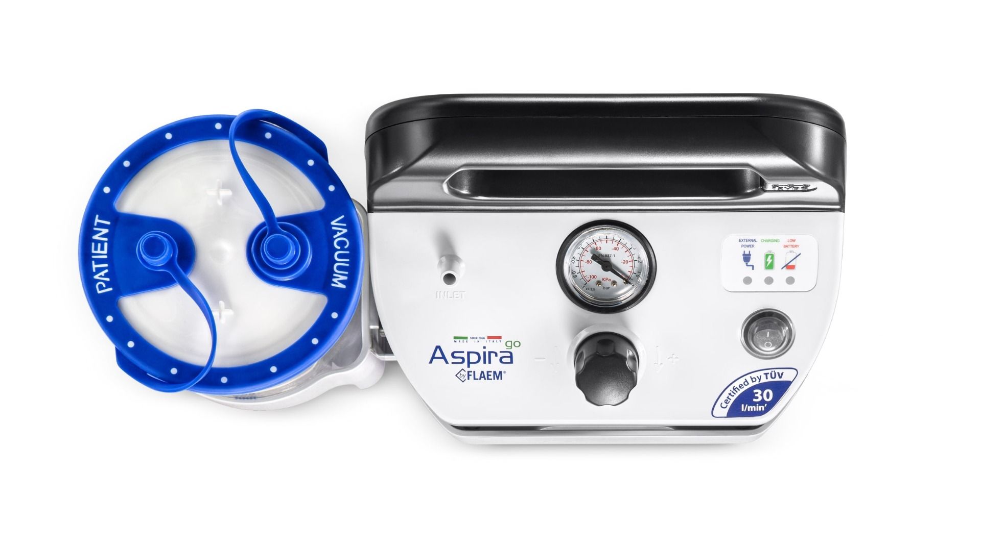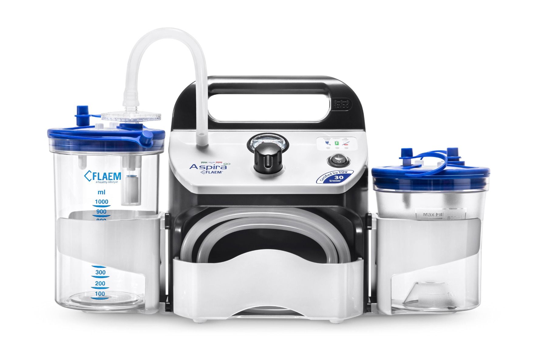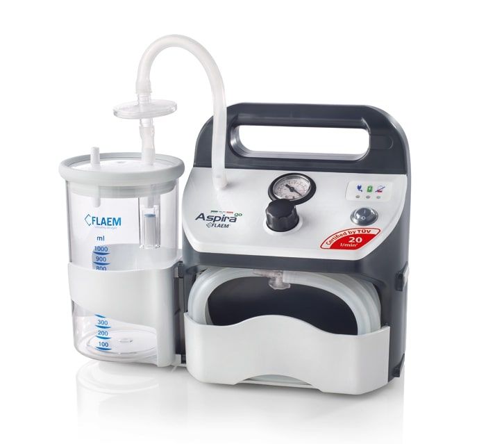 El aspirador de mucosidades Flaem Aspira go (20 y 30L/mn) combina potencia y compacidad para una aspiración fiable en cualquier circunstancia. Disponible en dos modelos (20 ó 30 L/min), responde a las exigencias de los profesionales de la salud y de la asistencia domiciliaria.