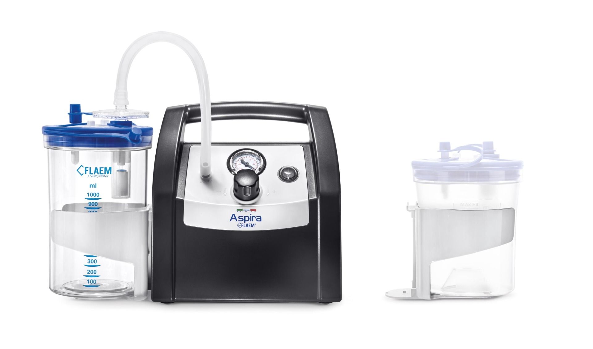 Fiable y fácil de mantener, el aspirador de mucosidad Flaem Aspira es la solución ideal para una aspiración eficaz e higiénica.