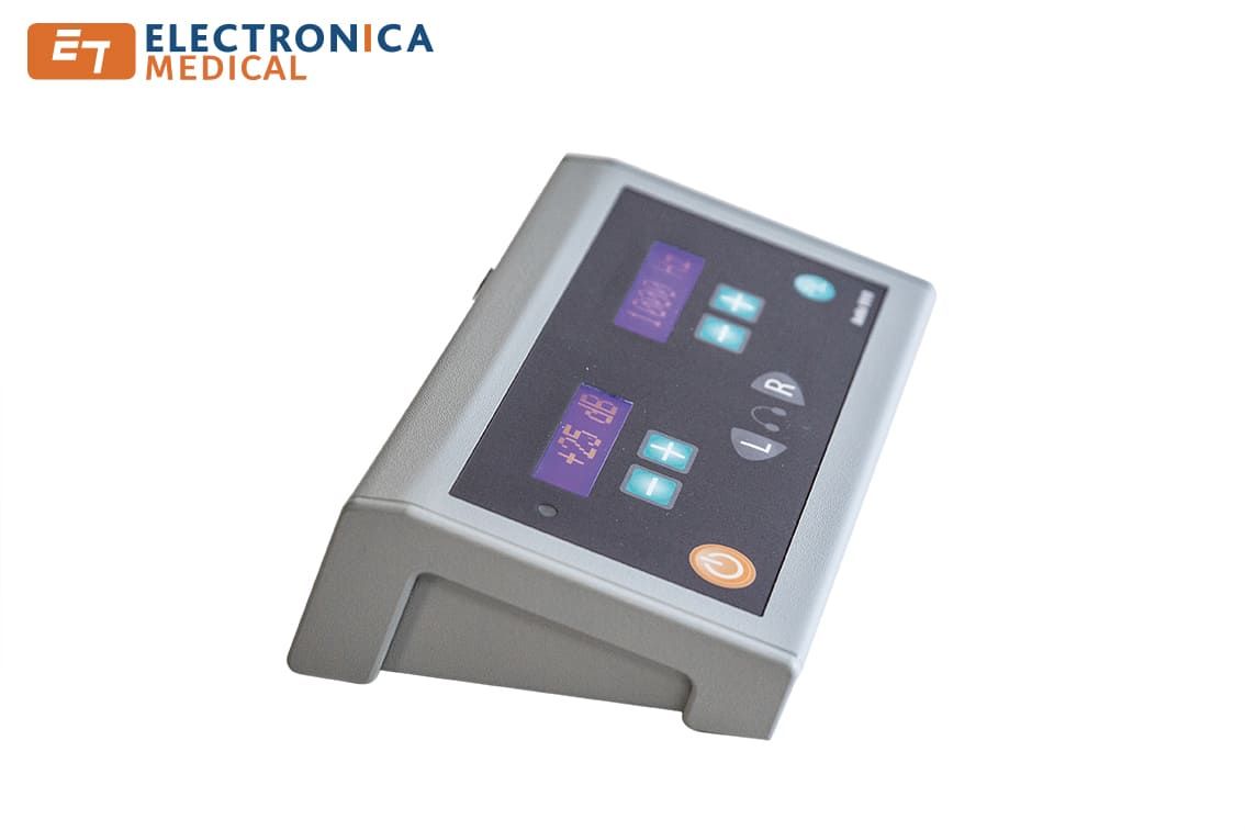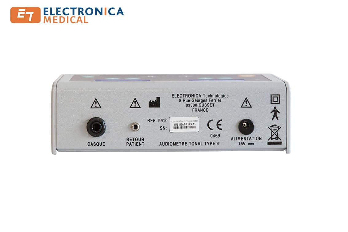 La máquina de audiometría de Electronica Medical 9910 con conexión eléctrica y batería integrada es un aparato de diagnostico auditivo bastante práctico. El dispositivo es fácilmente transportable debido a su talla y su peso ergonómicos. Además, el transporte también se facilita debido a que el producto viene provisto con un estuche de transporte anti choques con el fin de desplazar y proteger el aparato. De igual manera, sus dos amplias pantallas retro iluminadas y su modo de visualización de las cifras proveen una legibilidad óptima de la frecuencia y de la intensidad de los sonidos emitidos. En cuanto a la frecuencia, esta es configurable ente 125 y 8000 Hertz y la intensidad del nivel sonoro se puede variar entre -10 a 100 dB. Sus teclas silenciosas y en relieve proveen un confort ideal.