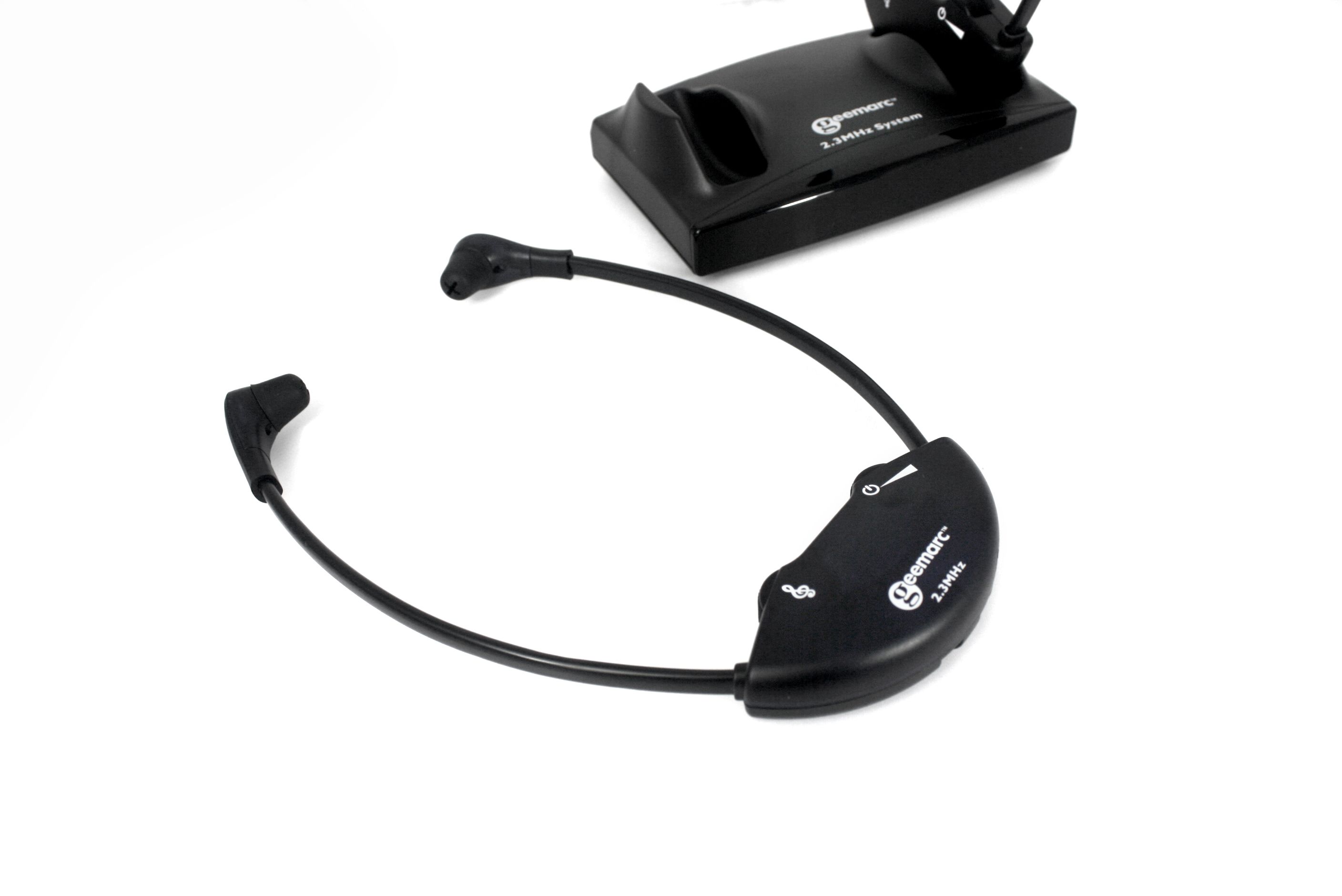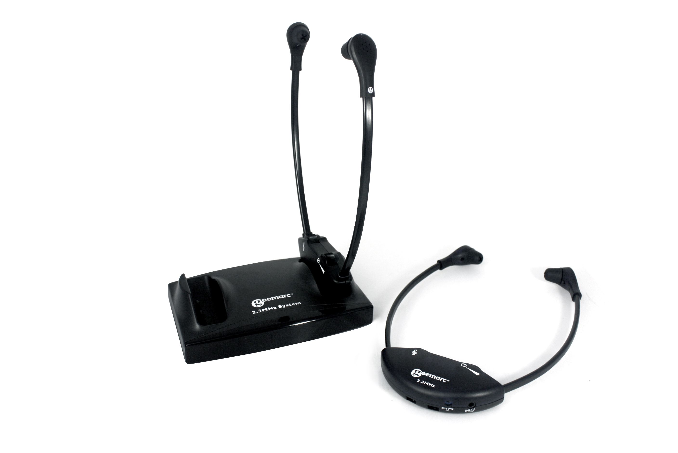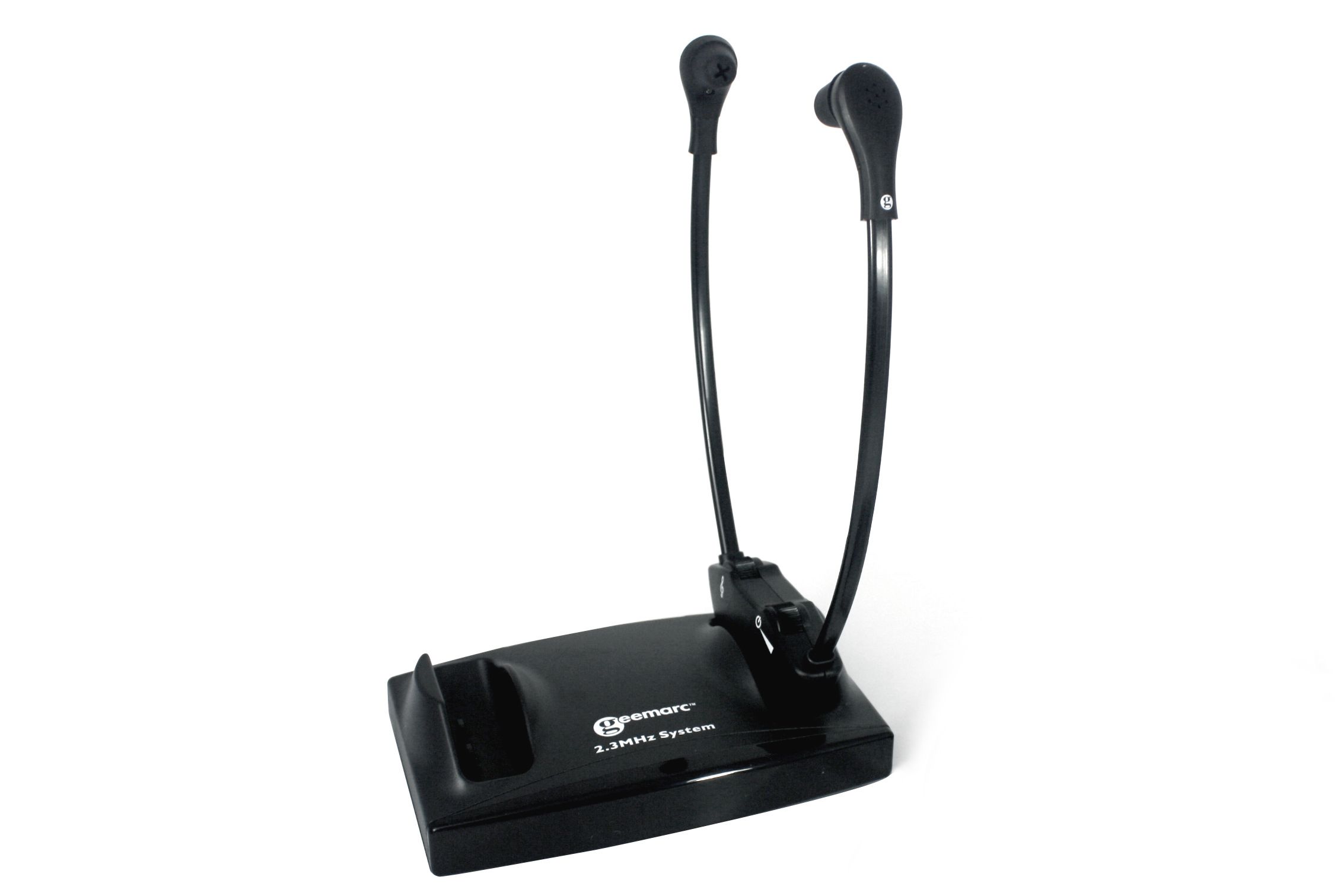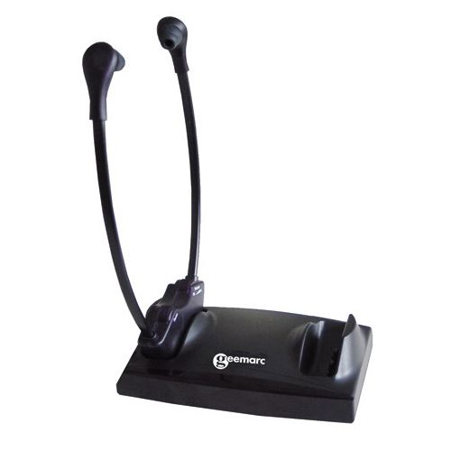 Los auriculares inalámbricos Geemarc CL7100 son unos cascos sin cables que amplifican el sonido, perfectos para ver la televisión. Son unos auriculares ligeros, cómodos que se colocan en el contorno del cuello.