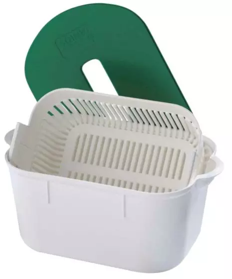 - Recipiente de 10 litros: volumen neto; 5 l de volumen útil, tapa sin ranura