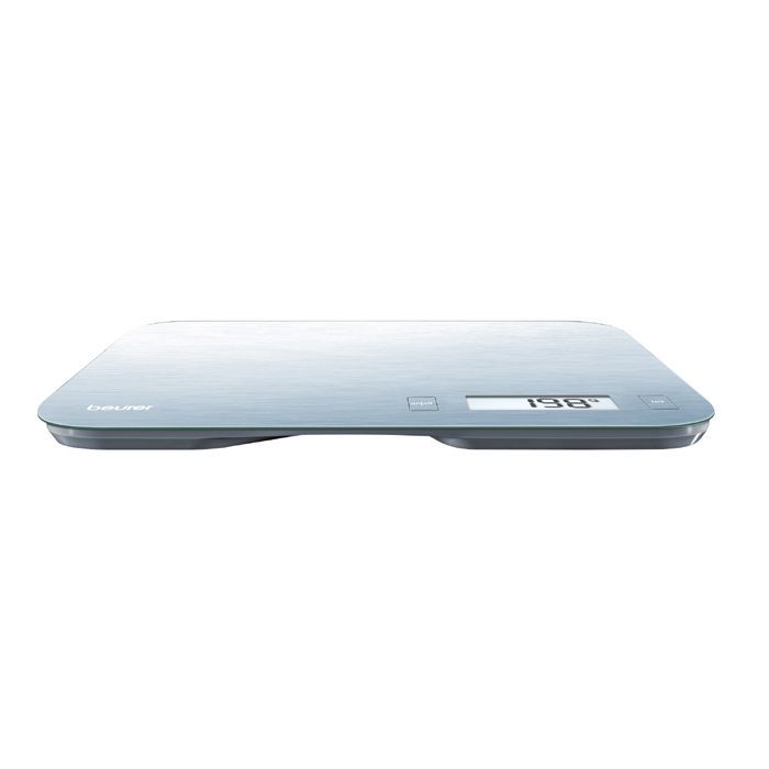 Balanza de cocina Beurer KS 48 steel - Superficie de acero inoxidable - Control moderno sensible al tacto - 5 kg de capacidad - Graduación: 1 g - Función de pesaje: con tara - Stop: Automático - Garantía: 5 años.