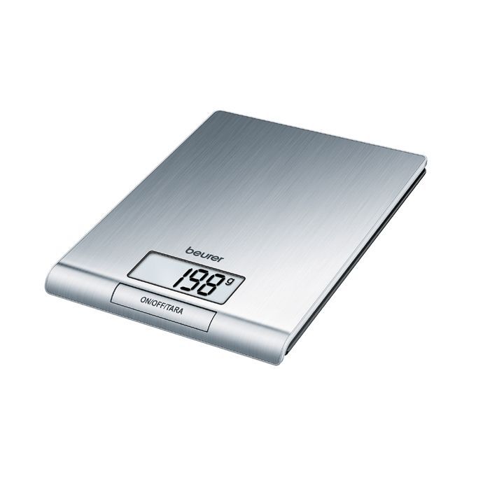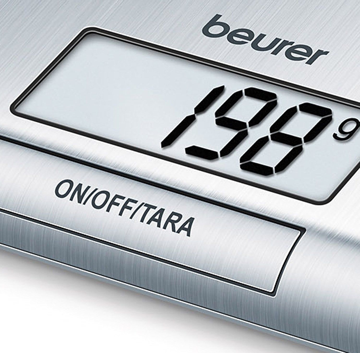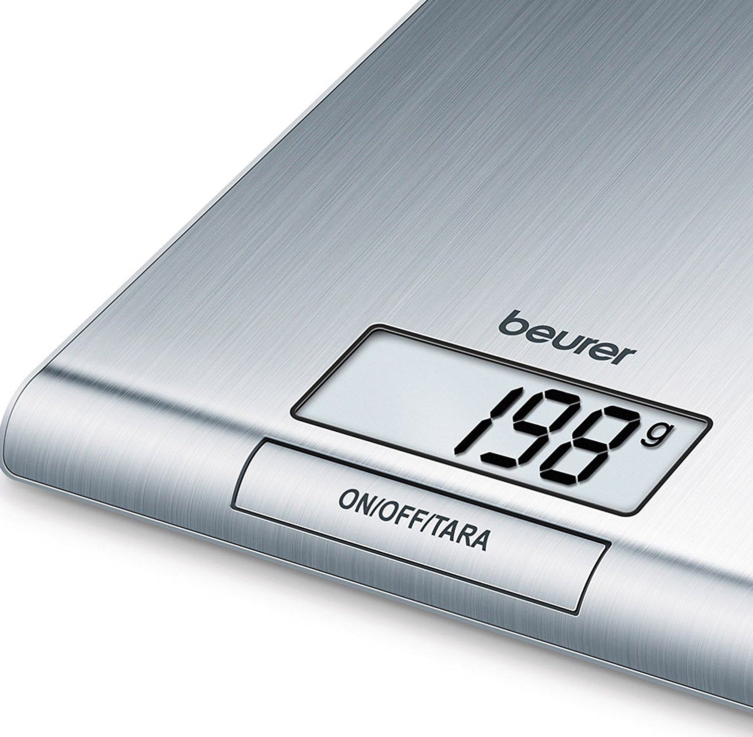 Balanza de cocina extraplano Beurer KS 42 - Espesor: 16 mm - Cómodo y fácil de almacenar - Se puede colgar - Función de tara y auto apagado - Acero inoxidable - Gran pantalla LCD - 5 años de garantía