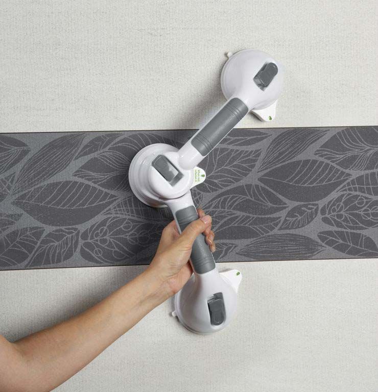 La Barra de sujeción para baño de Lanaform permite a sus usuarios desplazarse, levantarse, agacharse o sentarse con toda seguridad. Gracias a sus tres ventosas mecánicas y a sus palancas de aspiración, esta barra se ajusta fácilmente sobre una superficie de baldosas, cristal, fibra o porcelana. La barra no puede colocarse bajo ningún concepto sobre una superficie de otro material, una superficie con poros no es adecuada para una buena fijación. La barra cuenta con un indicador de color que permite asegurarse sobre su correcta colocación: verde, la barra está correctamente fijada; rojo, la barra no está correctamente fijada.