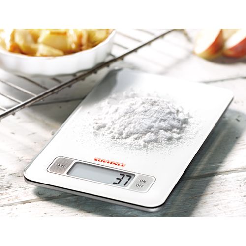 Báscula de cocina Page Blanca Soehnle - Ultra delgada: sólo 17 mm - Superficie de pesaje de vidrio - Gran pantalla LCD de 12 mm - Capacidad: 5 kg - Graduación: 1 g