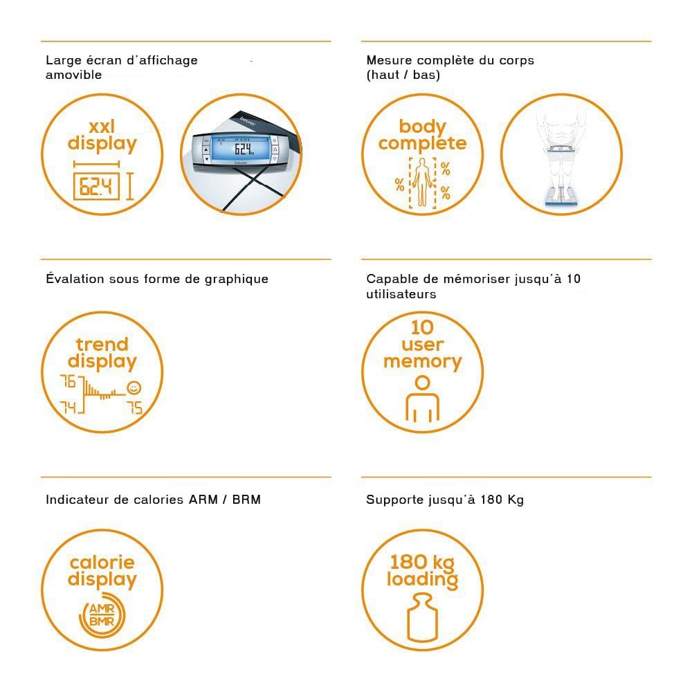 Bascula de diagnostico Beurer BF 105 body complete Medición precisa de la parte inferior y superior del cuerpo con 8 electrodos. Pantalla XXL extraíble