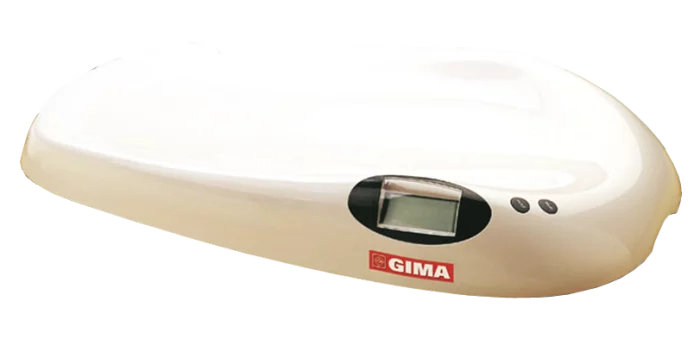 La Báscula pesa bebés GIMA es una herramienta para medir con precisión el peso y la estatura de los bebés. Cuenta con una configuración automática de cero y se apaga automáticamente después de 30 segundos de inactividad. Un botón de música está integrado en la báscula para distraer al bebé con una suave melodía.