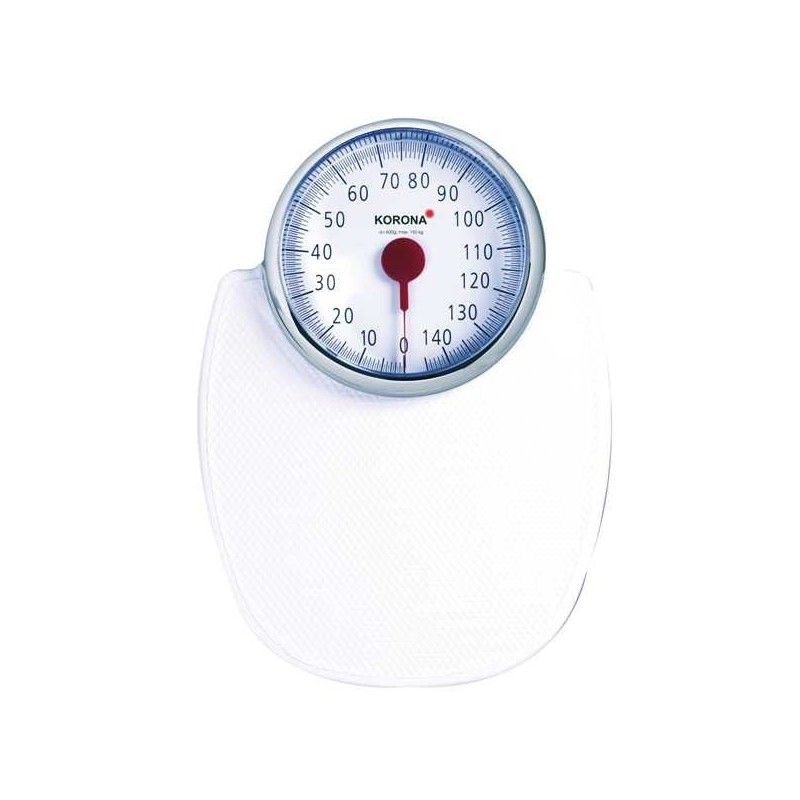 Esta báscula clásica cuenta con una plataforma antideslizante de color blanco y un gran dial circular. Este último permite a sus usuarios ver cómodamente el peso indicado por las agujas.