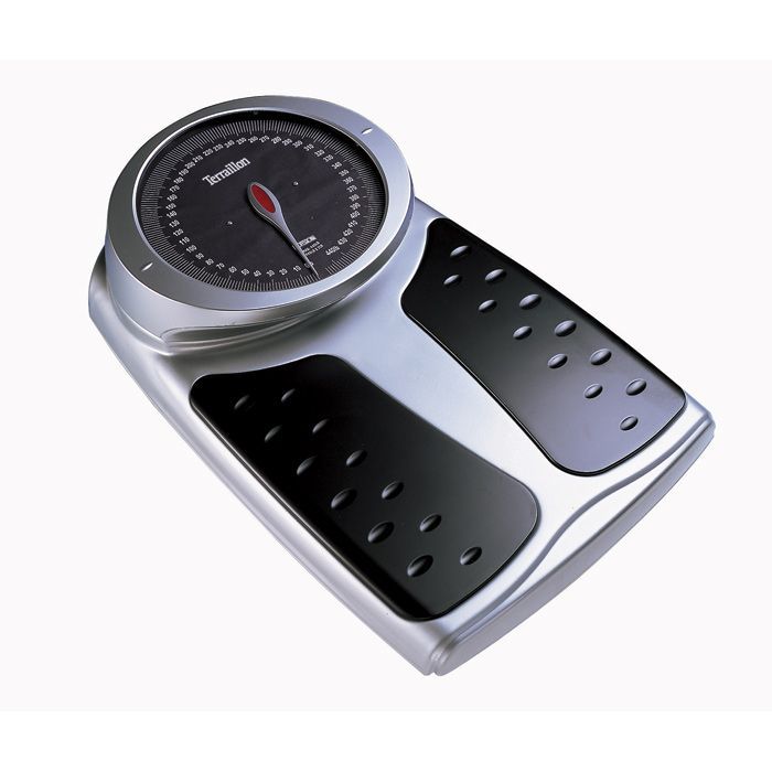 Báscula médica mécanico TPRO 4000 Plateada Terraillon, Platillo largo y robusta con tapiz antideslizante, Aguja envolvente, Grande pantalla facil de leer realzada de 20 cm