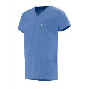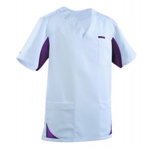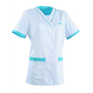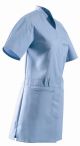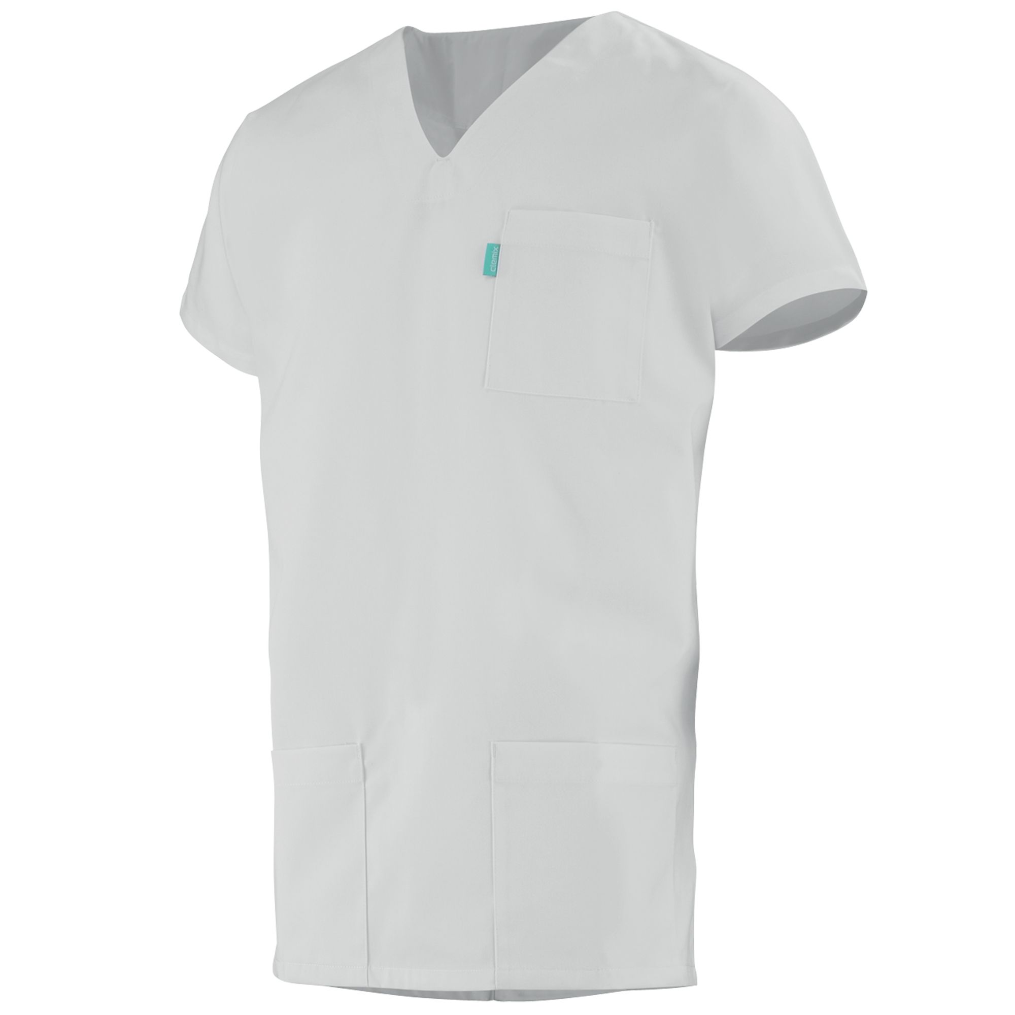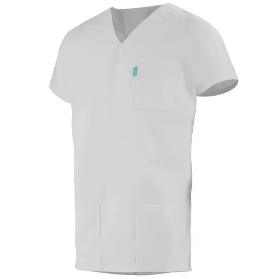 Bata blanca Unisex, ZOE Cuello V Color: blanco Mangas de kimono 1 bolsa al pecho 2 bolsas bajas Dimension espalda: 80 cm Material: sarga 65% poliéster 35% algodón 210g Lavable : 85°