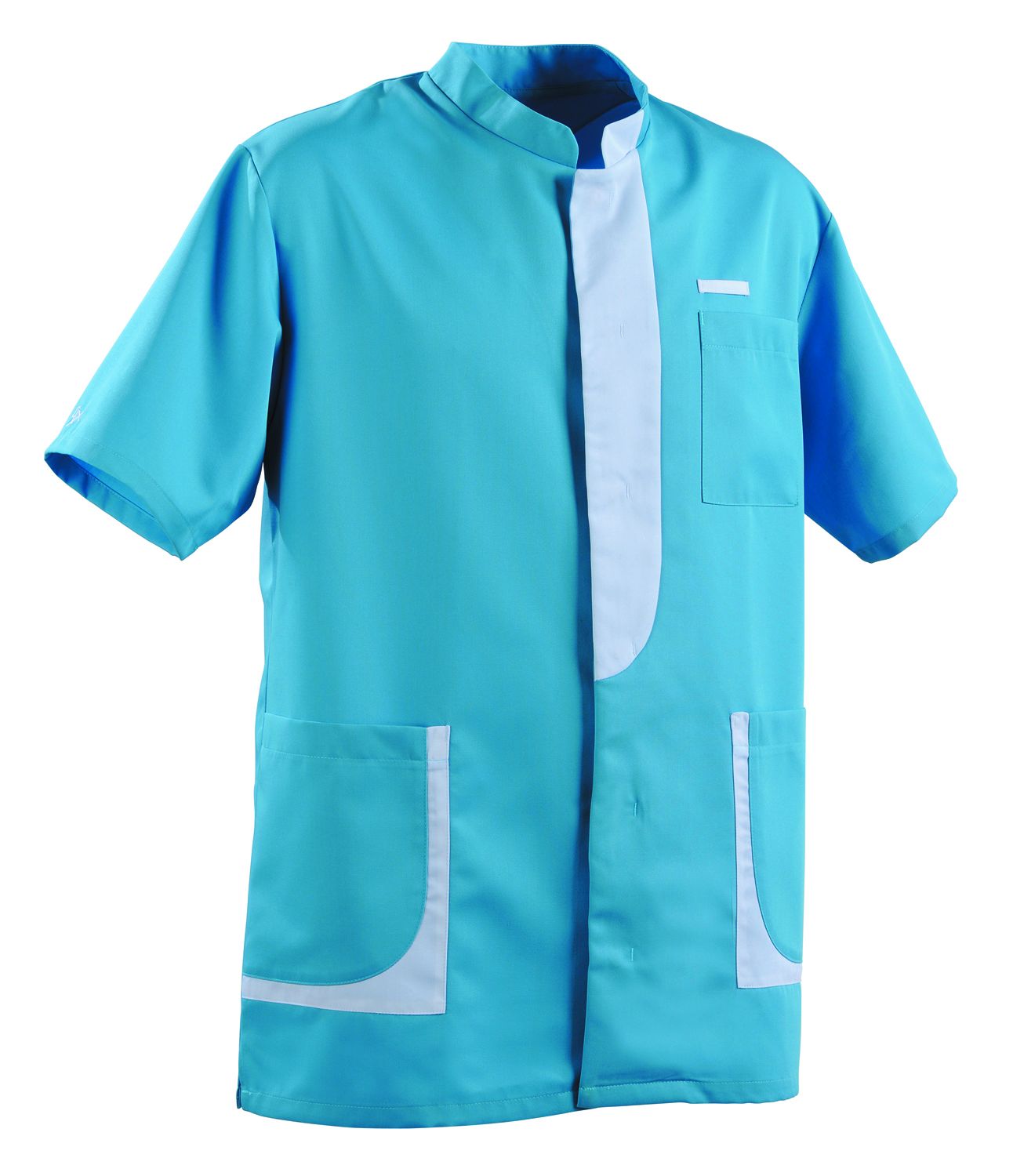 Bata de medico hombre LEE Adolphe Lafont Azul turquesa - Cierre centralizado con adornos y pinzas ocultas - Tejido: Sergé 50%, polyester 50%, algodón 190 g - Longitud espalda : 80 cm - Talla : 0 à 6 - Color : Azul turquesa