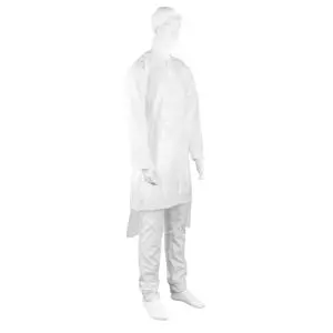- Polipropileno no tejido hipoalergénico y suave. Mangas cortas, cierre con cordón en la cintura.