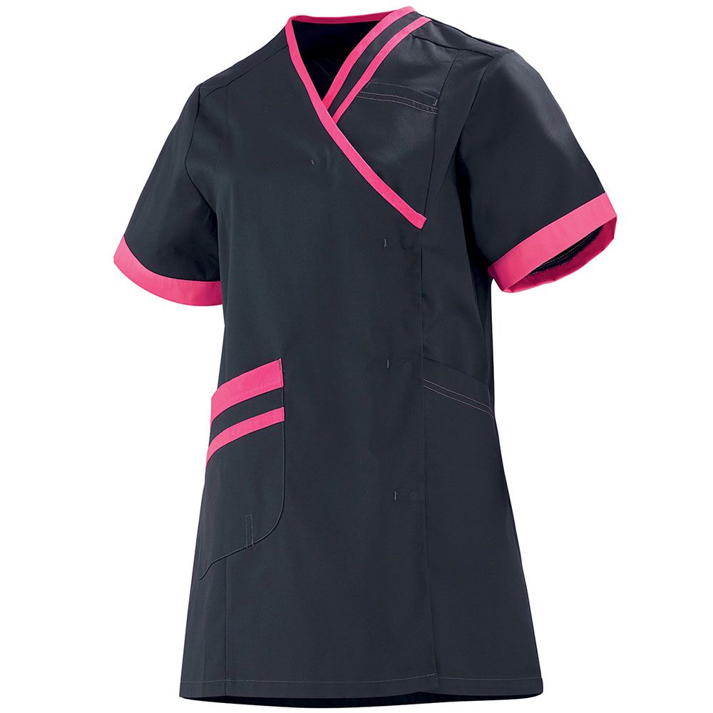 Bata Medica Corta Mujer LILEE 8TCC00PC Carbone/Fushia - Cerradura por grippers y cruzado tipo ""Tapa-corazon"" - Tejido: Sergé 50%, polyester 50%, algodón 180 g - Longitud espalda : 75 cm - Talla : 0 à 6 - Color : Carbone/Fushia