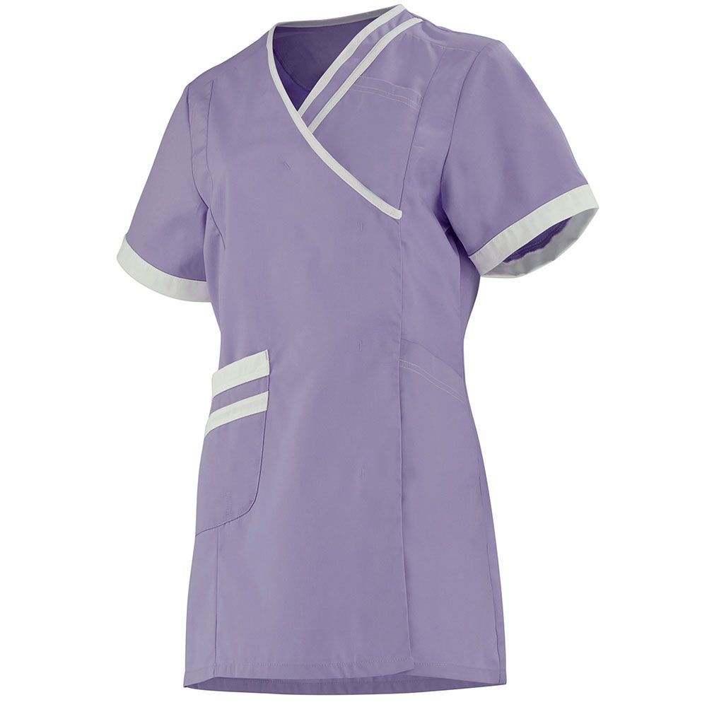 Bata Medica Corta Mujer LILEE 8TCC00PC Parma/Blanco - Cerradura por grippers y cruzado tipo ""Tapa-corazón"" - Tejido: Sergé 50%, polyester 50%, algodón 180 g - Longitud espalda : 75 cm - Talla : 0 à 6 - Color : Parma/Blanco