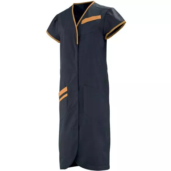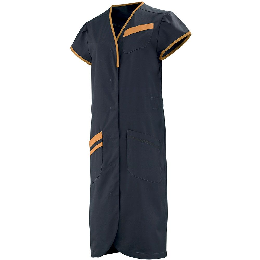 Bata medica mujer mangas cortas DAPHNEE 8PMC00PC Carbone/Naranja melon - Cerradura por botones tipo grippers - Cuello en V - Tejido : Sergé 50%, polyester 50%, algodón 180 g - Longitud espalda: 105 cm - Talla : 0 a 6 - Color : Carbone/Naranja melon