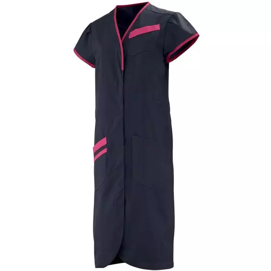 Bata medica mujer mangas cortas DAPHNEE 8PMC00PC Carbone/Rosa fushia - Cerradura por botones tipo grippers - Cuello en V - Tejido : Sergé 50%, polyester 50%, algodón 180 g - Longitud espalda: 105 cm - Talla : 0 a 6 - Color : Carbone/Rosa fushia