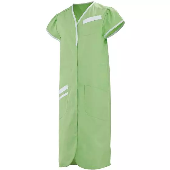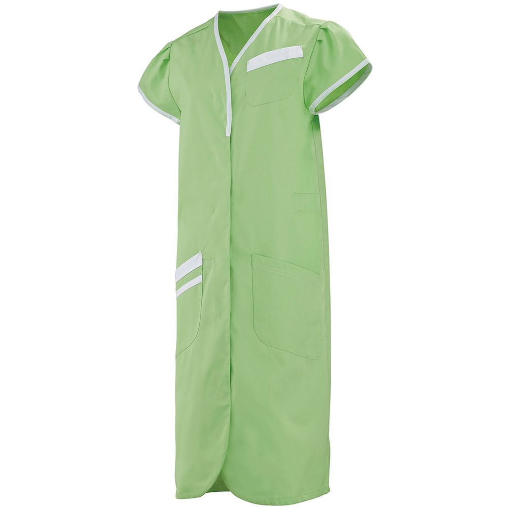 Bata medica mujer mangas cortas DAPHNEE 8PMC00PC Verde manzana/Blanco - Cerradura por botones tipo grippers - Cuello en V - Tejido : Sergé 50%, polyester 50%, algodón 180 g - Longitud espalda: 105 cm - Talla : 0 a 6 - Color : Verde manzana/Blanco
