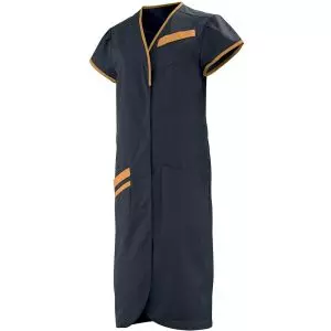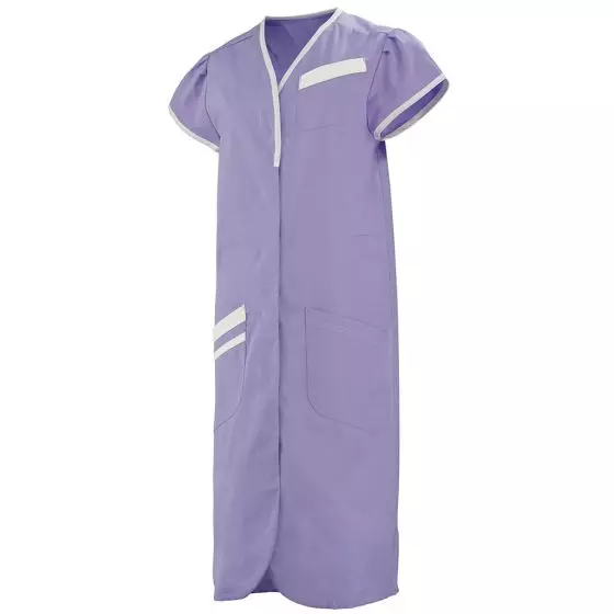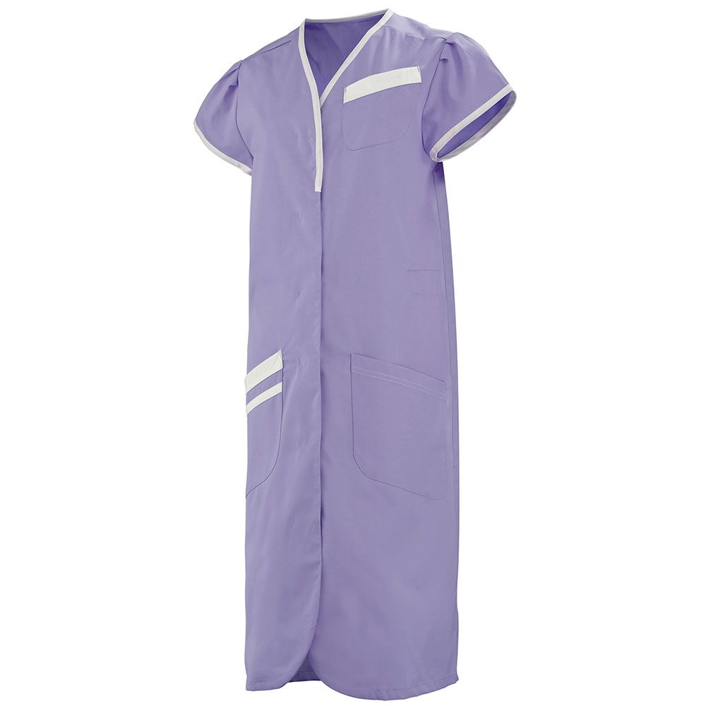 Bata medica mujer mangas cortas DAPHNEE 8PMC00PC Parma/Blanco - Cerradura por botones tipo grippers - Cuello en V - Tejido : Sergé 50%, polyester 50%, algodón 180 g - Longitud espalda: 105 cm - Talla : 0 a 6 - Color : Parma/Blanco
