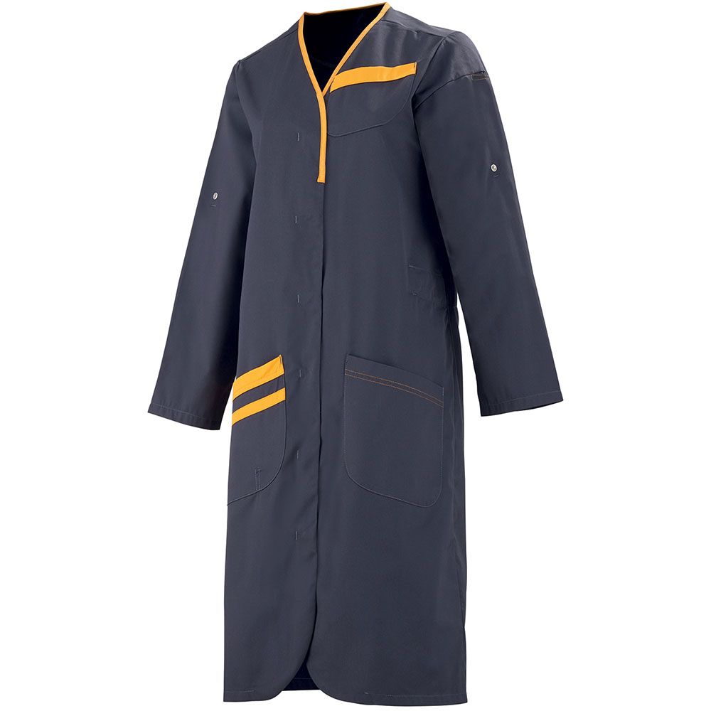 Bata medica mujer mangas largas NOMIA 8MLC00PC Carbono/Naranja melon - Cerradura por botón grippers - Cuello en V - Tejido : Sergé 50%, polyester 50%, algodón 180 g - Longitud de espalda : 105 cm - Talla : 0 a 6 - Color : Carbono/Naranja melón