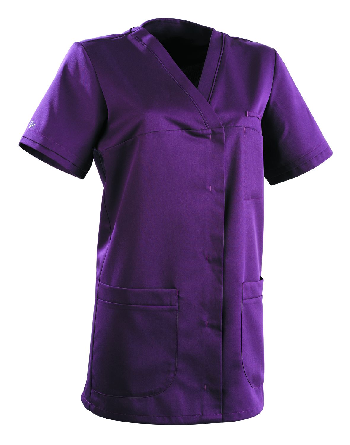 Bata Medica para Mujer ALEXANDRA Clemix 2.0 Lafont Ciruela - Cuello con escote en V - Mangas cortas - Tejido: Sergé 50%, polyester 50%, algodón 180 g - Longitud espalda : 75 cm - Talla : 0 a 6