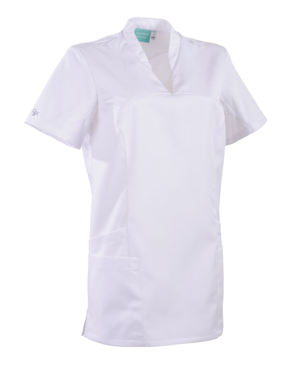 Bata Medica para Mujer LAURA 2LAU Clemix 2.0 Lafont blanca - talla ajustada - Escote cuello en V - Estilo polo Túnica - Longitud espalda : 75 cm - Talla : 0 à 6 - Color : Blanca