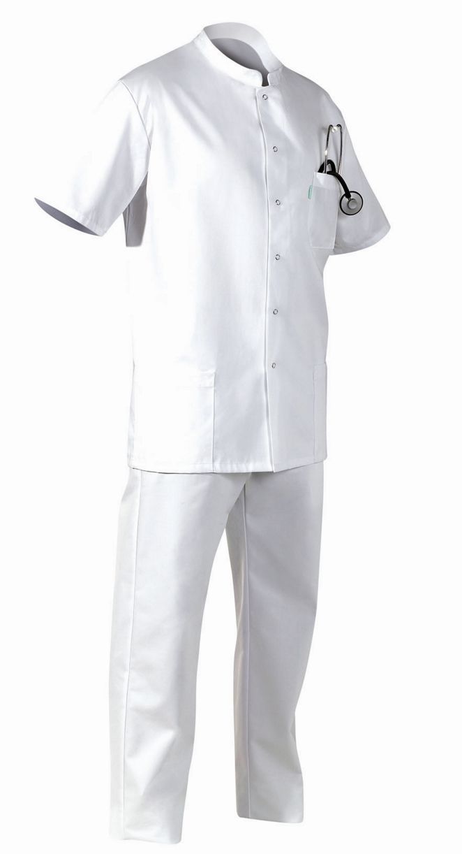 Batas hombres, MAX Color: Blanco Mangas cortas 1 bolsa al pecho 2 bolsas bajas Dimension espalda : 80 cm Material : sarga 65% poliéster 35% algodón 210g Lavable : 85°