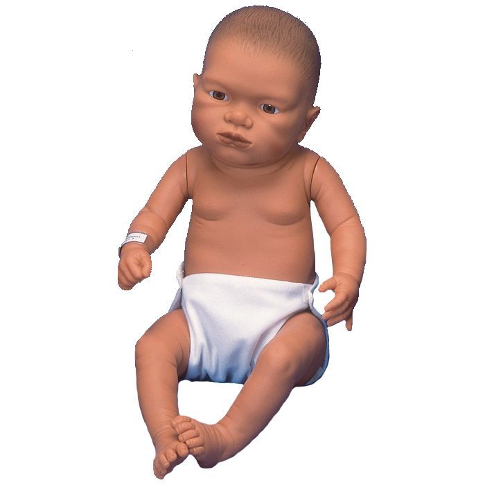 Esta linda bebé-muñeca es ideal para entrenar los principios principales del cuidado del bebé en el colegio y en cursos de preparación de padres jóvenes.