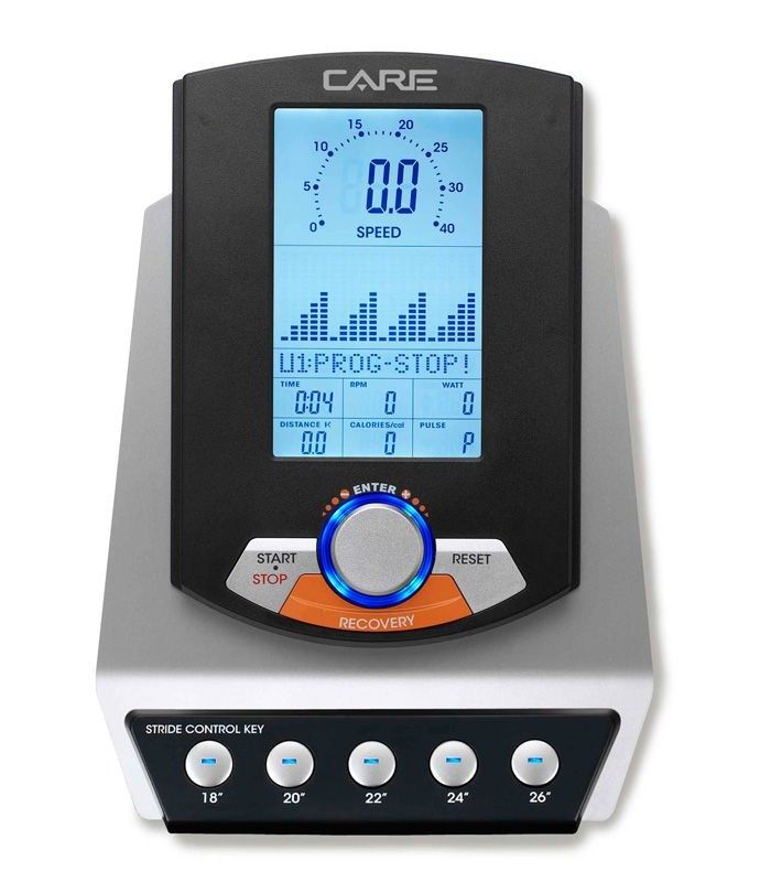 La Bicicleta elíptica Multi-Stride 460691 CareFitness es un aparato profesional de gimnasia, forma parte de los aparato de alta gama para deportistas experimentados de la línea ""Intensive Line"" de Care Fitness. Minuciosamente estudiado, el aparato tiene un aire futurista y se adapta a un uso intensivo ofreciendo un abanico de ejercicios muy variados. La elíptica motorizada es muy fiable, el modelo se ajusta según la longitud de la zancada en 5 niveles: paso, marcha corta, marcha larga, footing y carrera, además de proponer 16 niveles de dificultad y 23 programas para que cada usuario puede encontrar el entrenamiento que más le convenga en función de sus capacidad y sus objetivos.