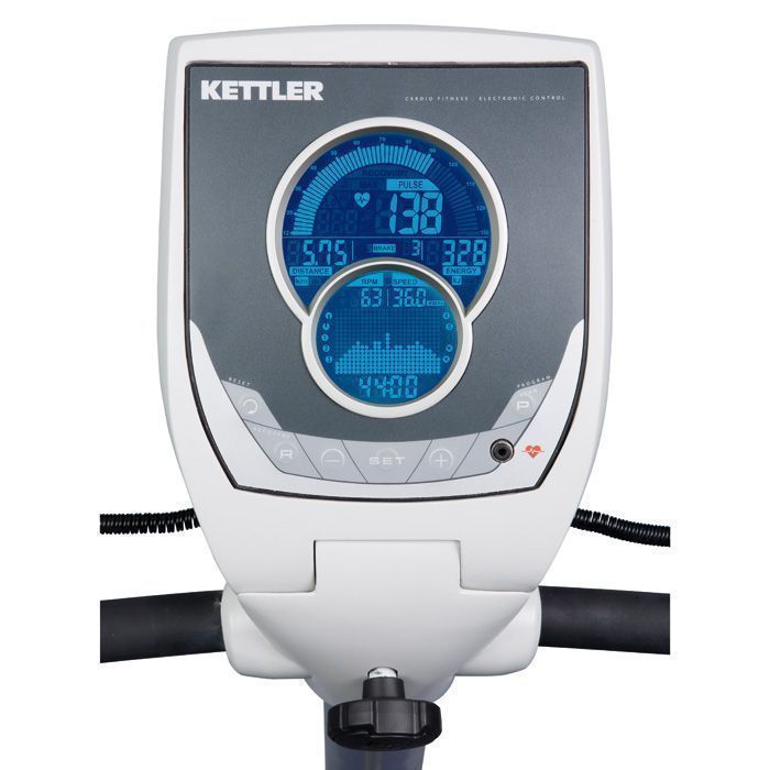 Bicicleta estática Golf P Eco Kettler - Bicicleta estática ECO con capacidad de autoalimentación - Sistema de frenado:electromagnético - Programas de entrenamiento: 8 - Masa de inercia: 9 kg - Peso máximo permitido: 150 kg - Peso: 38 kg
