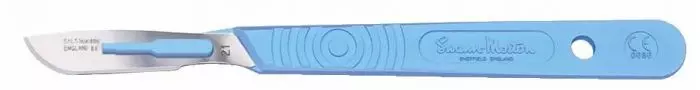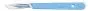 Novedad: graduación del mango plástico. Empaquetadas individualmente sobre una bandeja de présentation, cubierta de una envoltura transparente que permite ver el bisturí. Una pestaña de fijación mantiene el bisturí sobre la bandeja para evitar todo riesgo de perforación