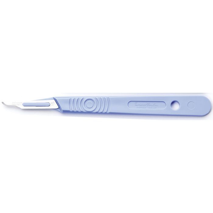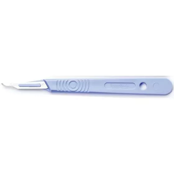 Bisturís estériles Swann Morton n°15 Caja de 10 - Ensanche en el platillo - Acero inoxidable - Manga de plástico - Color azul graduado