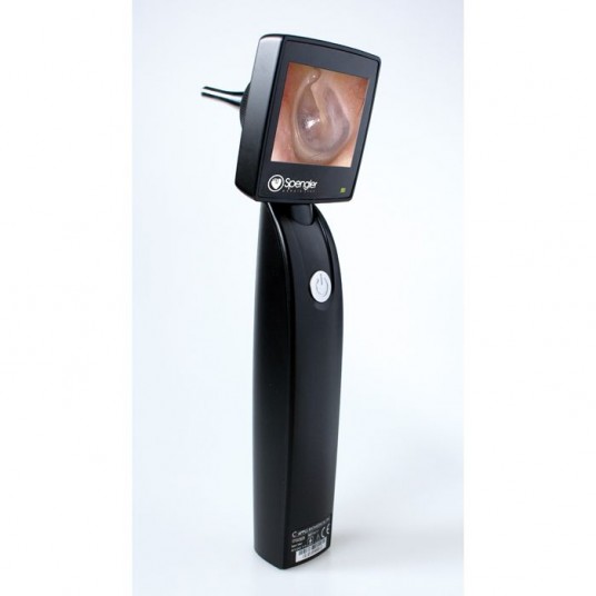 - Otoscopios con video: estos modelos poseen una tecnología de punta y una gran eficacia. Este tipo de aparatos cuentan con una gran pantalla HD la cual aumenta el campo de visión además de ofrecer una comodidad suplementaria a nivel visual. Un ejemplo es el otoscopio con vídeo Otoscreen 2 Spengler que además permite grabar los datos para visualizarlos más tarde. Además, este cuenta con una autonomía de 4 horas lo que permite llevarlo a todas partes sin tener que cargar con más accesorios.