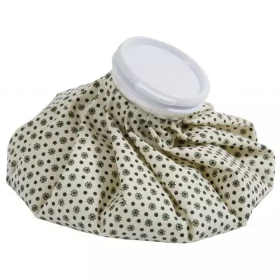 Está disponible en varios diámetros (15, 23 o 28 cm) la bolsa de hielo es muy práctica: se moldea fácilmente al presionarla contra el miembro lesionado, para cubrir la totalidad de la superficie dolorosa. Compuesta de una bolsa de caucho natural impregnado de nylon y con un tapón de PVC, este último es resistente al agua para no dejar salir el agua antes que se endurezca. Es reutilizable, la bolsa de hielo se puede poner o bien en el congelador o bien en la nevera.