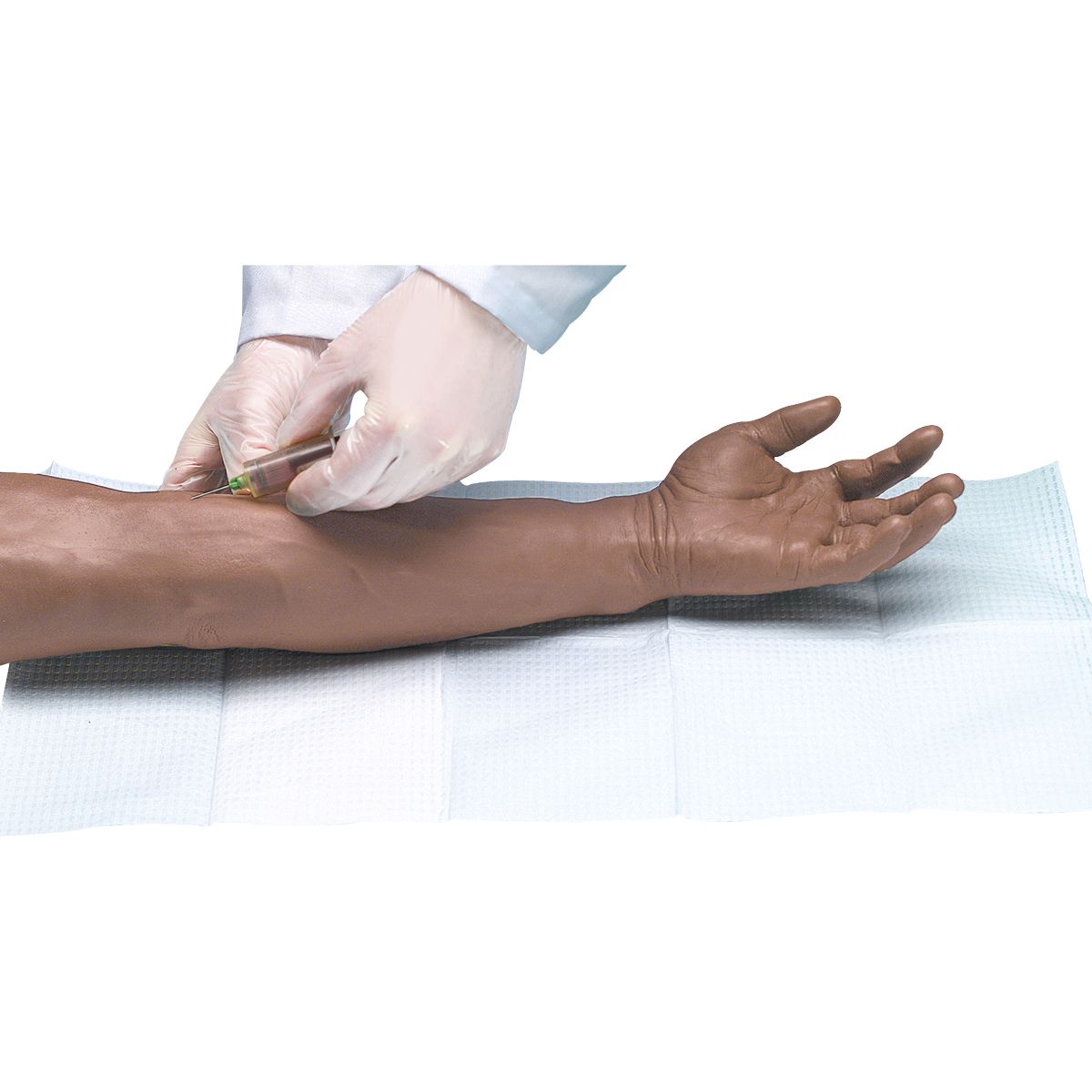 Las prácticas pueden realizarse en la v. basílica, v. cefálica, v. cefálica accesoria y v. mediana del antebrazo. Las inyecciones intramusculares pueden realizarse en el m. deltoides. En la parte superior del brazo hay zonas preparadas para la inyección intracutánea. La inyección intramuscular en el m. deltoides es particularmente realista gracias a la piel blanda y fiel al original así como los puntos de referencia óseos fieles al original existentes en esta zona. Las inyecciones intracutáneas con agua destilada producen los habones cutáneos característicos en las zonas previstas en la parte superior del brazo.